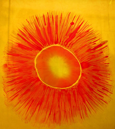 die Seidentücher sind je ca. 1 m auf 1 m gross und sind in meinem Atelier entstanden |